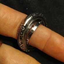 A world of mystery in your grasp Unravel old-world scripture and wonder with this one-of-a-kind accessory. Stylish and fit for men (and women), this triple-layer ring brings old-world charm for a standout ring unlike any other. The ring’s three layers can also be opened up as a necklace pendant. Pure-silver…