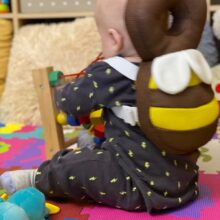 Our busy bee is more than a cute cushion — it’s a safety device that protects the head, shoulders, neck, and back of your child in the event of a fall. A donut-style head cushion and plush, wide body help absorb impact and sharp corners. Don’t compromise on safety with this uniquely-designed, made-for-safety cushion that wears just like a backpack for impact protection where it matters most.