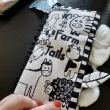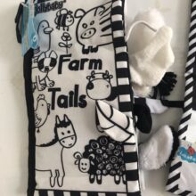 Let your baby physically feel and be attached to a fun story with this exquisite, unique storybook experience. Each page features recognizable animals with labels to allow your child to build his or her cognitive skills and animal recognition. The black-and-white nature of this storybook also aids in stimulating visual development.