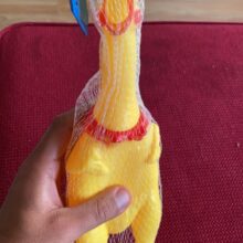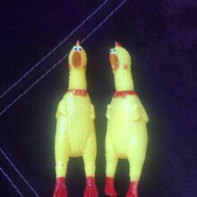 Made of 100% non-toxic rubber, our chicken measures 11in (28cm) in length, our loud, fussy toy can go with you from parties to concerts and so much more for a screamin’-good time.