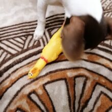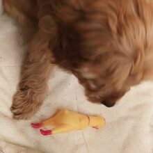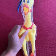 First, giving this to your dog what do you expect will happen? Dogs pop and trash tennis balls, so do you really think this rubber chicken is going to be any stronger than a tennis ball? LOL