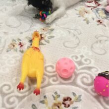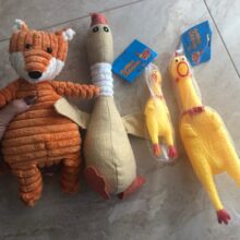 Great chickens. The dog is really getting used to them, barking on them. It's time. Recommend the item, the price is super and fast delivery. Thank you