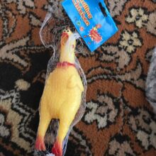 This is my dogs favorite toy! He has had one for years- it is his present to us when we get home or he has does something he is good, etc.... his last one broke after five years of hard use.... I needed one quickly so I ordered a replacement "chicken". It came quickly and was exactly as was expected... it even looks better made than the original one I had... thick rubber chicken with squeaker.... such a happy dog again!!! I was very happy with the customer service, was they send a thank you note too!
