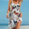 Summer Disney Minnie Mickey Mouse Women Sexy Beach Dresses 3D Tie Dye Rainbow Suspenders Vintage Beachwear Fashion Party Dress