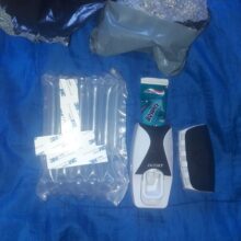 The goods received, packed very well, this product must have a smooth surface to adhere to; unfortunately my bathroom has no such place except the mirror. it can also be screwed into the wall but I am not comfortable with that. I am using the product by laying if flat on the counter top. It works well, but I kinda disappointed with the mounting options.
