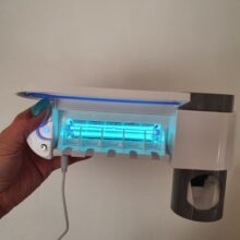 Very cool antibacterial holder. Beautiful design! Holds everyones toothbrush and sanitizes them effortlessly. Great product to save counter space & have a clean toothbrush. Very great product!