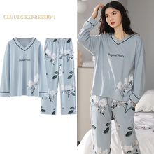 Spring Autumn Knitted Cotton Elegant Women Floral Pajama Sets Sleepwear Casul Lounge Set Plaid Pants Pajamas Womens Home Fashion